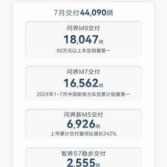宣城股票配资 【鸿蒙智行7月交付4.4万辆】日前,鸿蒙智行官宣:2024年1-7月